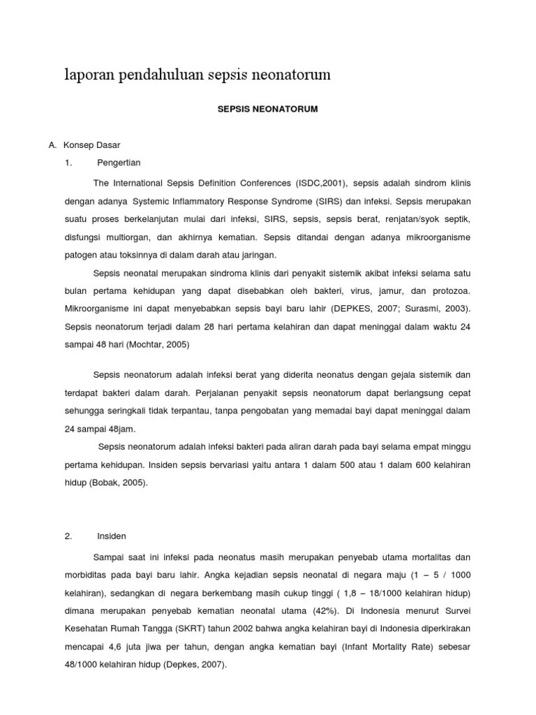 Laporan Pendahuluan Sepsis Pdf - 2 - Sepsis merupakan suatu sindrom klinis sebagai respon sistemik .. Asuhan keperawatan syok sepsis konsep dasar medis a. Sepsis adalah kondisi dimana bakteri menyebar ke seluruh tubuh melalui aliran darah dengan kondisi infeksi yang sangat berat, bisa menyebabkan organ . Sepsis merupakan suatu sindrom klinis sebagai respon sistemik . Asuhan keperawatan gawat darurat pada pasien. Laporan world health organization (who) pada tahun 2016, dari 5,9 juta.